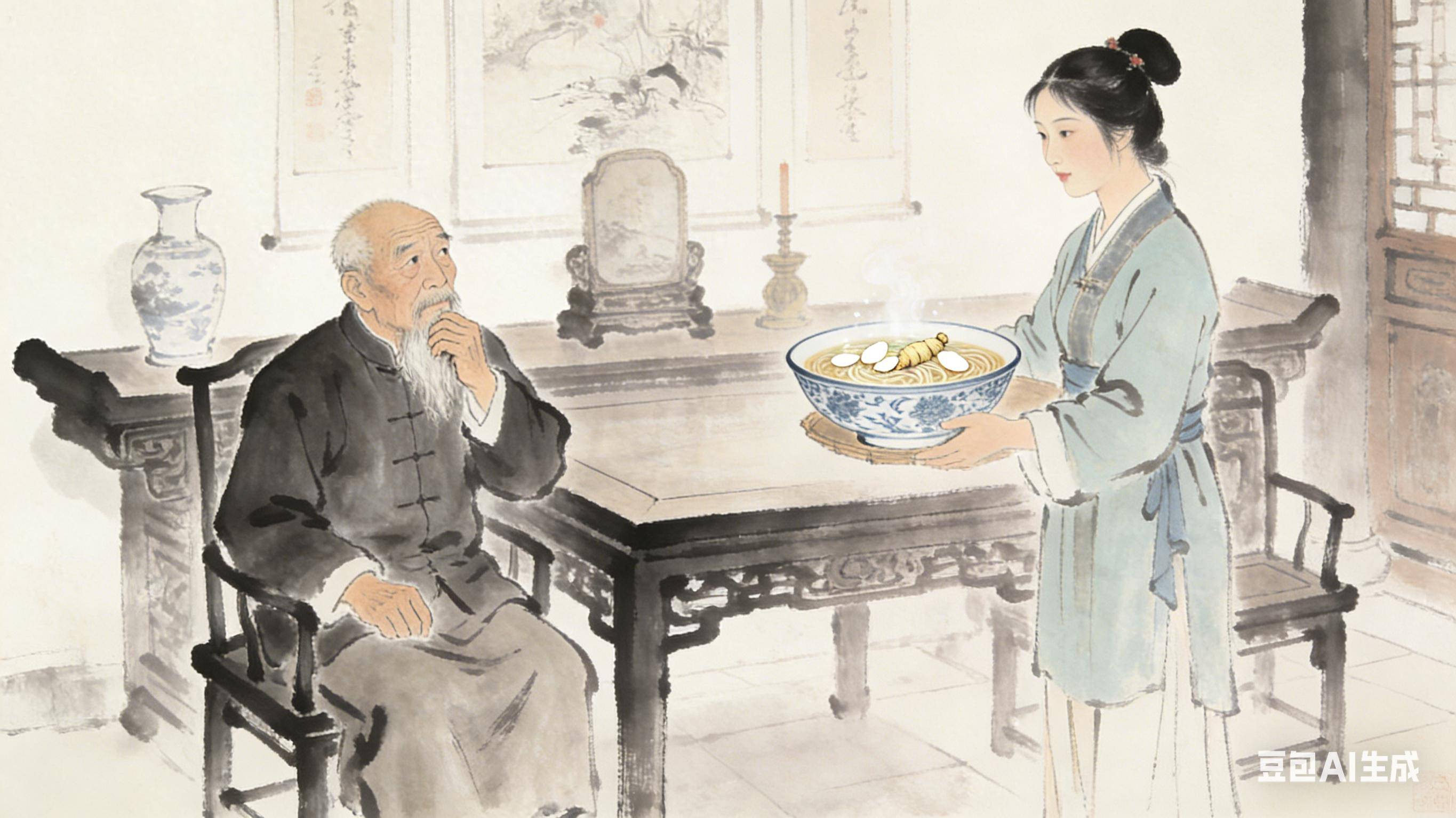 第一年,大女儿端来加了西洋参的面,老汉当晚胸闷气短。
