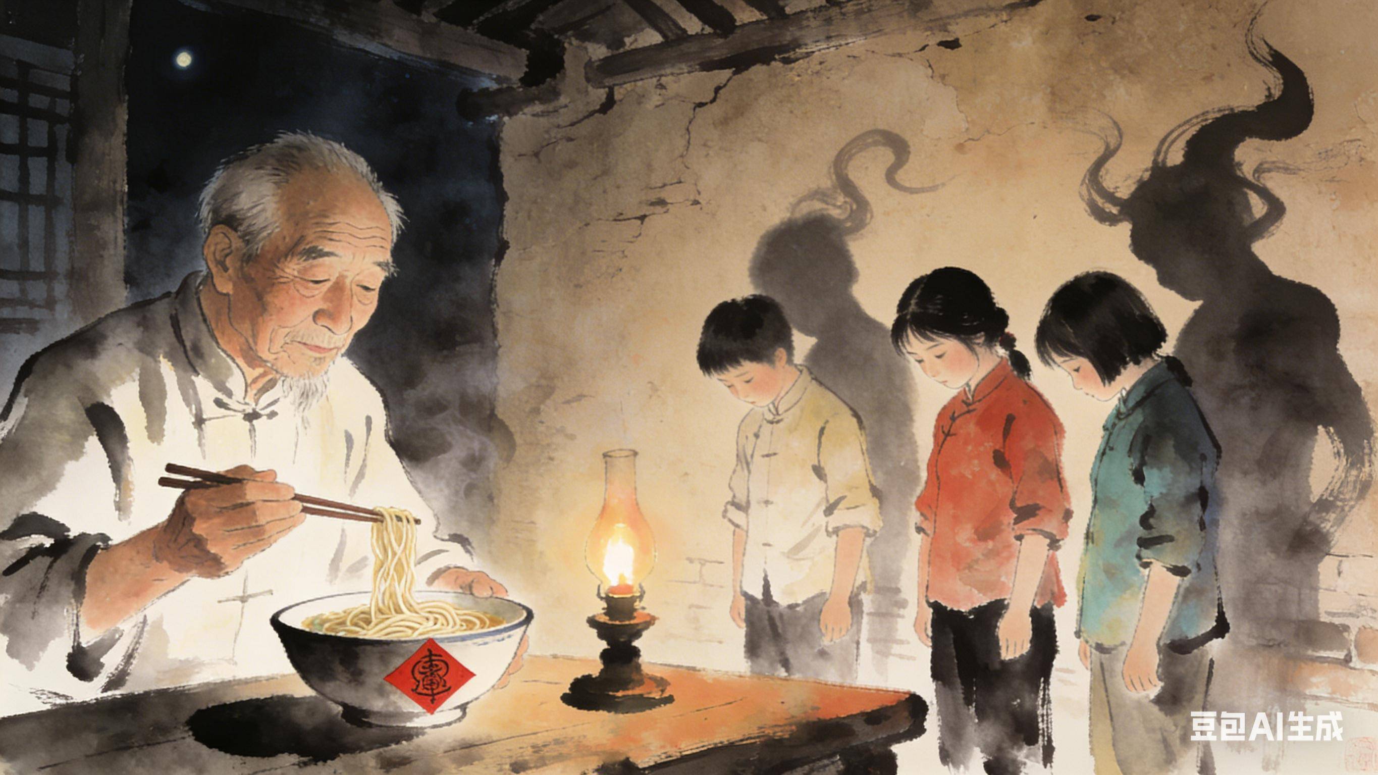李老汉浑浑噩噩回家,那碗面还冒着热气。